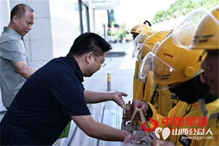 太原市平阳路街道亲贤长风商圈党群服务中心为奔跑者送清凉50余名来自顺丰邮政美团等平台的骑手代表在高温中收到了沉甸甸的关怀