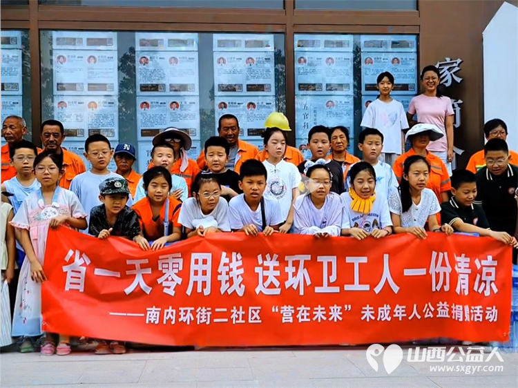 八月的太原,骄阳似火,柏油马路蒸腾着热浪,连树荫下的蝉鸣都显得有气无力。然而,在营盘街道南内环街二社区的党群服务中心,一群孩子的脸上沁着汗珠,却洋溢着比阳光更灿烂的笑容——这是“营在未来”未成年人公益活动现场,孩子们正用自己的零花钱,为烈日下的环卫工人送去一份清凉。