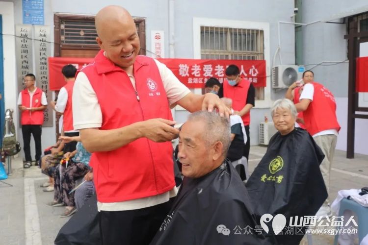 民族团结一家亲敬老爱老暖人心 盐湖区志愿者协会联合爱心单位在西城街道府西街社区开展志愿服务活动用义剪按摩情感陪护服务老年人