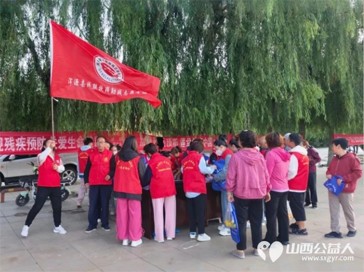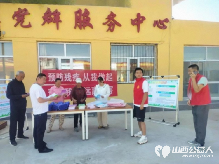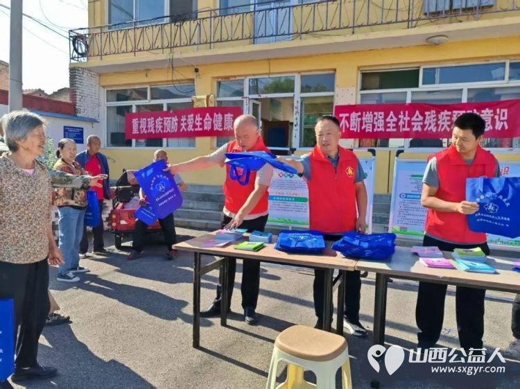 浑源县残联举行全国第九个残疾预防日宣传活动工作人员和浑源县残联扶残助残志愿者协会志愿者向群众发放了精心制作的宣传布袋和残疾预防宣传手册