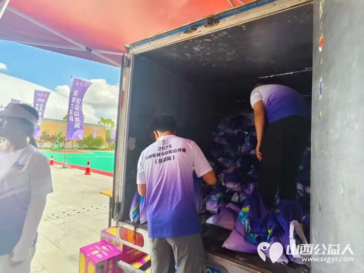 志愿者顶着烈日完成物资分装、场地引导等工作,保障赛事顺利进行;