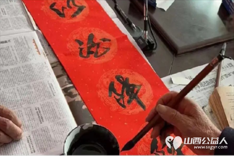 活动现场墨香飘溢,气氛热烈,邀请了村里的书法大师和巧手的老人们集聚一堂,饱蘸浓墨、奋笔疾书,巧手挥剪、妙趣横生,一副副精致的春联满载着节日的祝福,为即将来临的春节增添了一道浓浓的味道;一个个大红“福”字和栩栩如生的窗花,寄托着对新春的祝福和对幸福生活的憧憬,剪出了祝福,剪出了心意。寓意吉祥、散发墨香的春联、窗花,给寒冬增添了红红的喜庆,映衬出浓浓的节日氛围。写好的“福”字和春联分别送给了前来参加活动的居民群众、志愿者,高龄老人、残疾人及困难家庭。