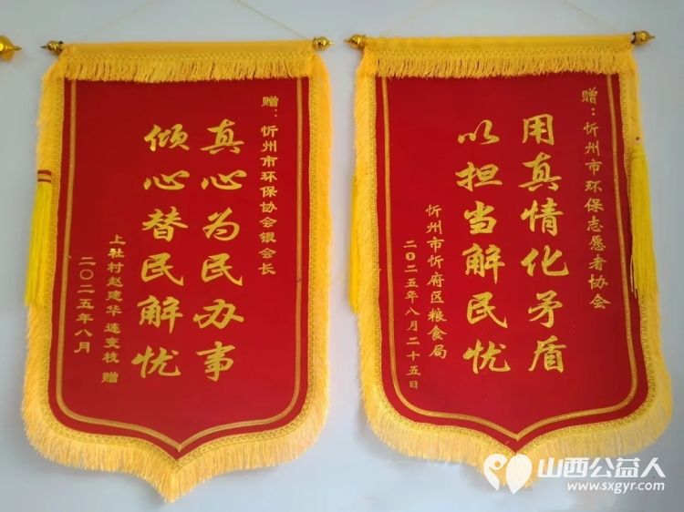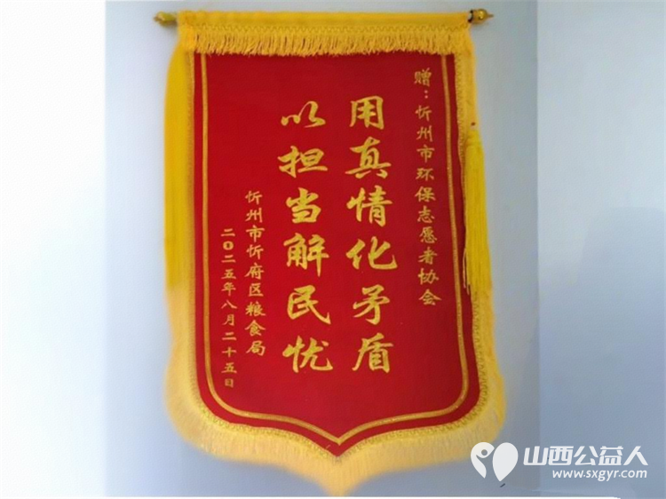 9月5日上午,忻州市环保志愿者协会的办公室里格外热闹——忻府区粮食局的代表与上社村残疾人赵建华的家属相约而来,手中捧着的两面鲜红锦旗,成为了此刻最珍贵的 “谢礼” 。