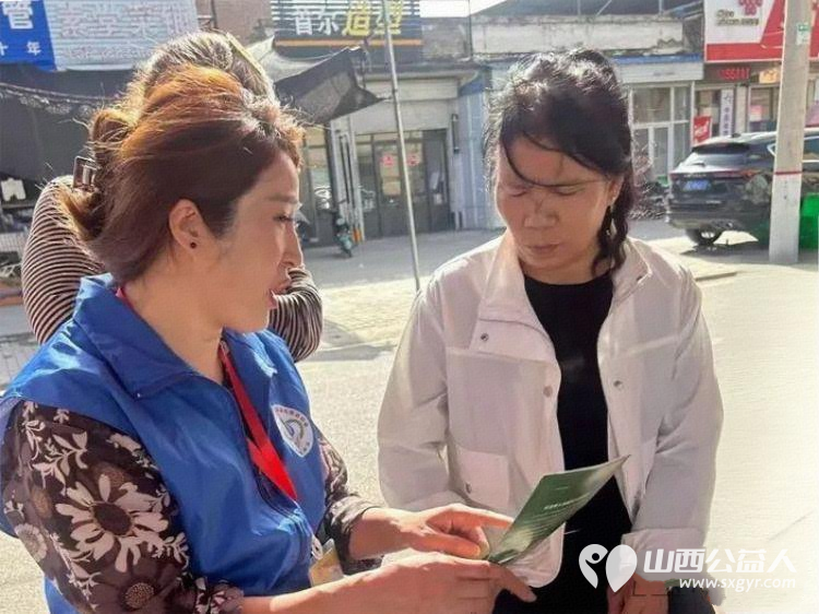 志愿者在学习资料,发放资料。