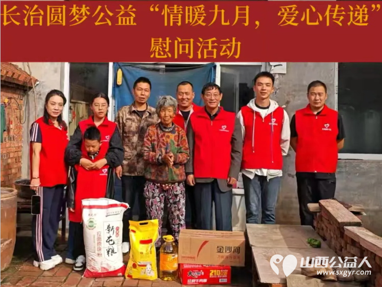 长治圆梦公益组织开展了一场主题为 "情暖九月,爱心传递" 的慰问活动志愿者们走进乡村为需要帮助的人们送去温暖与关怀