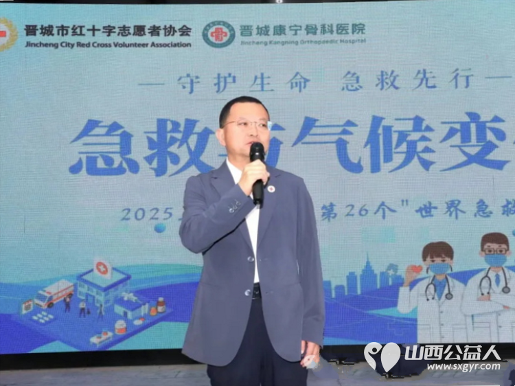 晋城市红十字会党组书记、常务副会长张沁出席活动并讲话。参加活动的领导还有晋城市红十字志愿者协会常务副会长宋晓莉、晋城康宁骨科医院党委书记付娜娜。