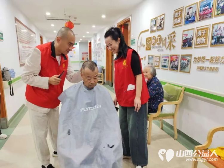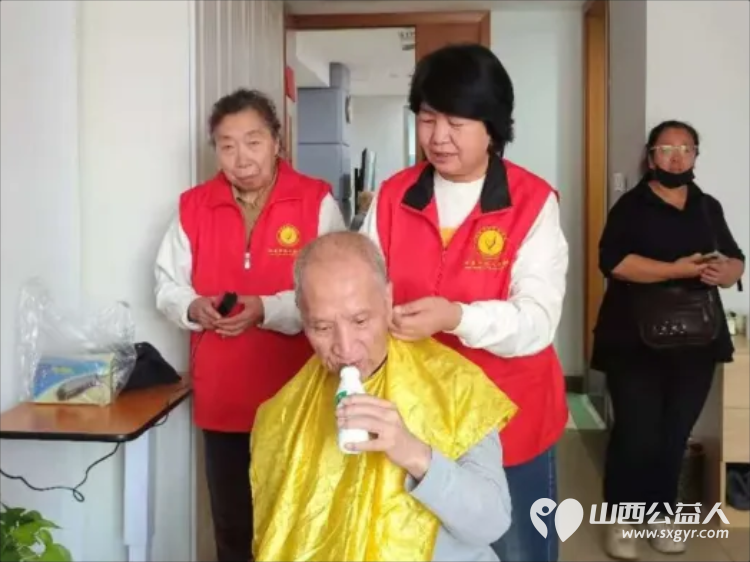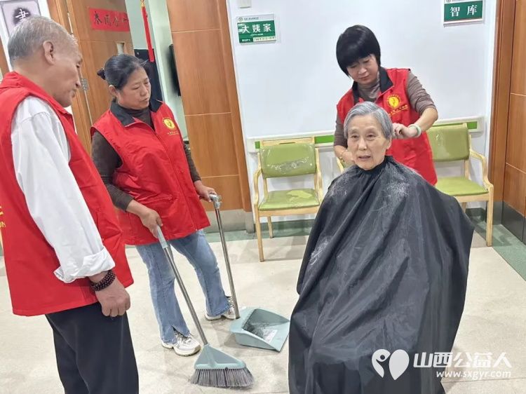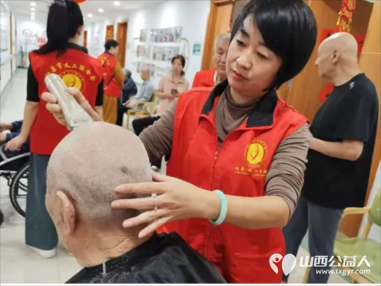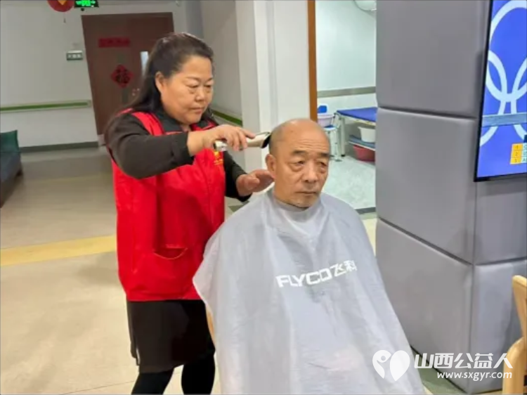 为老人理发,解决老人们的 “头” 等大事,让老人们都 “焕然一新”,精神百倍。义工耐心询问老人的喜好,让每位老人都能拥有满意的模样。