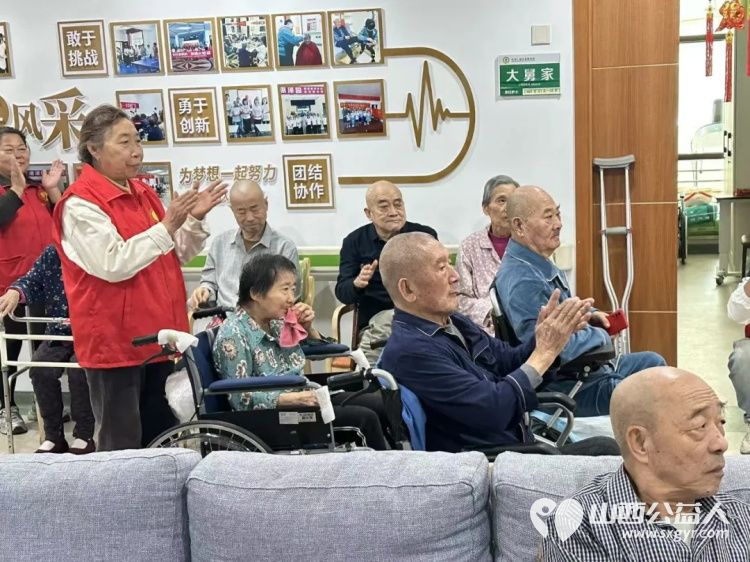 服务后,文艺表演登场。义工唱歌、朗诵、唱戏,熟悉的旋律勾起老人回忆,不少老人跟着哼唱。
