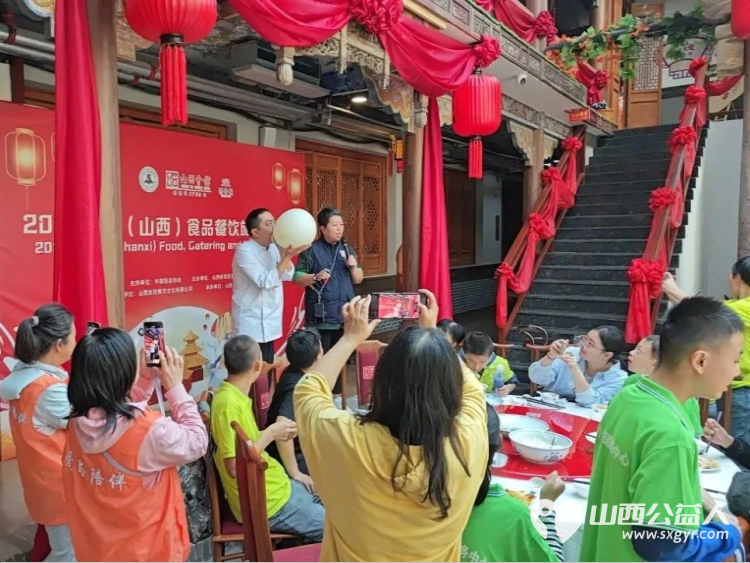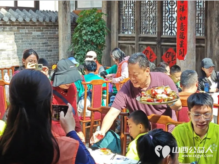 午餐时分,孩子们在山西会馆·关公宴品尝了山西省商务厅与山西会馆联合制定的十大晋菜,地道风味收获了阵阵赞叹。席间,山西会馆面艺团队献上令人惊叹的绝技表演:独轮车头顶刀削面、细如发丝的龙须拉面、薄如纸张的面气球等,每一项技艺都让孩子们叹为观止,现场欢呼声不断。此外,民歌献唱、灯笼舞、快板等节目轮番上演,为这场暖心的文化盛宴增添了更多色彩。