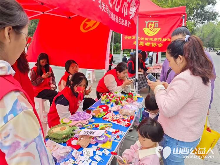 介休市北关街道彦博路社区志愿者协会联合杭州蔻德罕见病关爱中心以仁爱之心携手共进在博物馆广场举行爱心义卖活动让爱的火种燃遍每一个角落