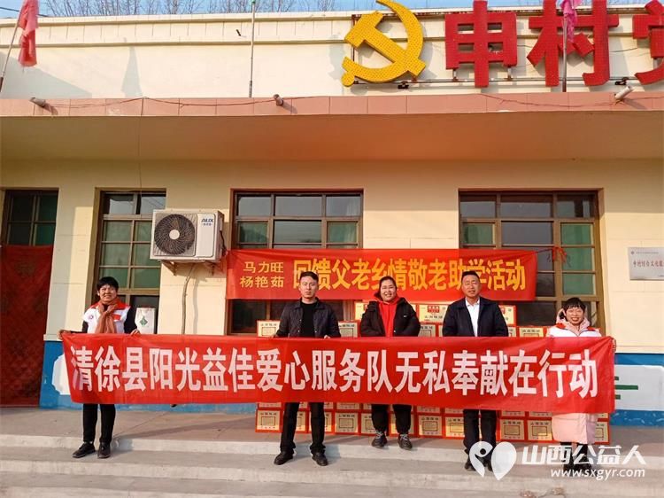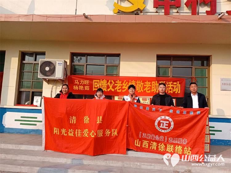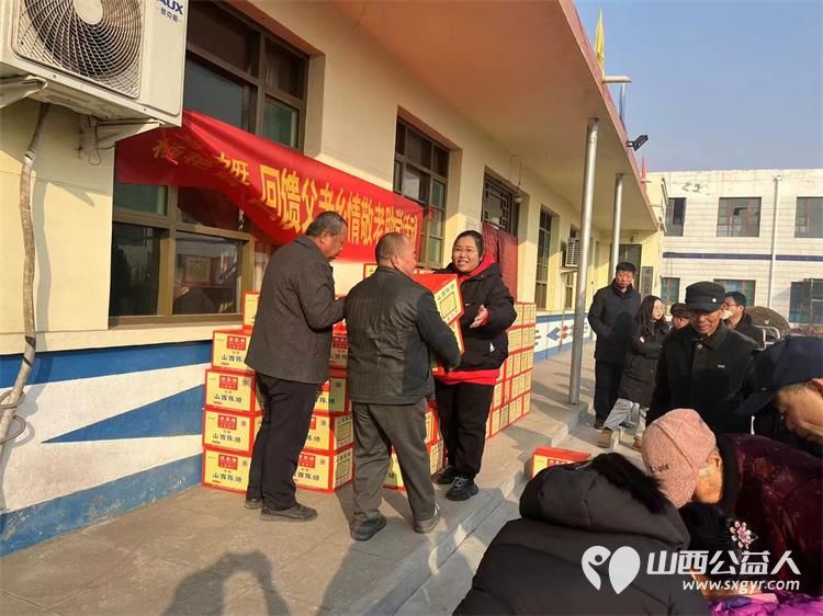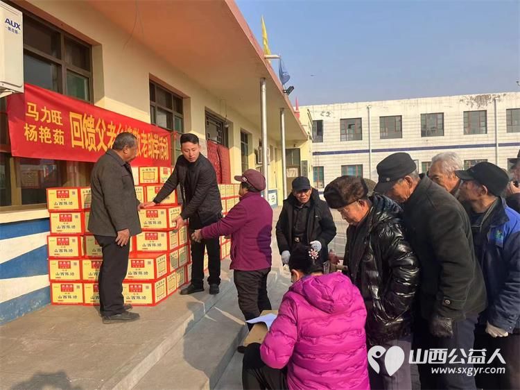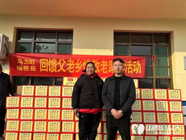 清徐县阳光益佳爱心服务队、祁县古县镇政府组织,马立旺、杨艳茹夫妇在祁县古县镇申村慰问全村70岁以上的老人捐赠200箱清徐老陈醋