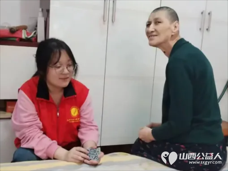 给大娘带了葡萄、橘子等水果。帮大娘剪指甲、打扫房间,陪大娘玩纸牌、讲故事,逗得大娘眉开眼笑