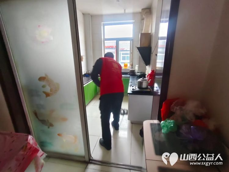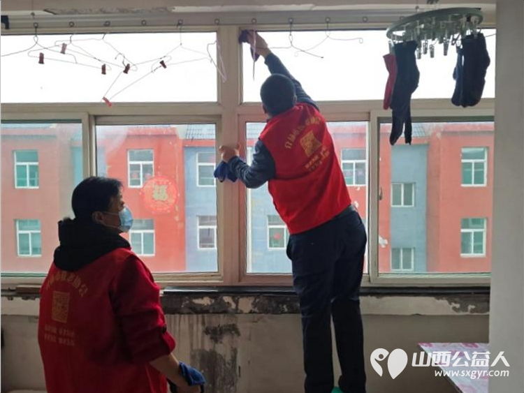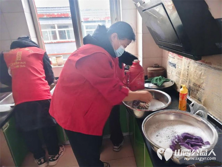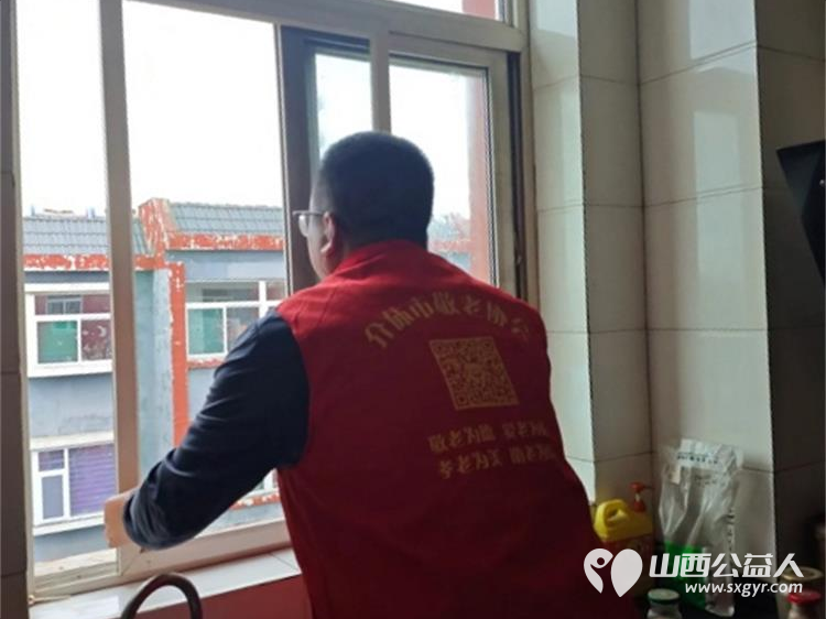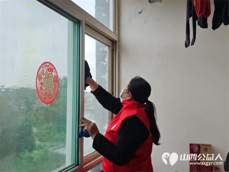 介休市敬老协会孝善行之敬老爱老助老活动走进龙凤镇张壁村入户82岁特困老人郑来保家中为老人擦玻璃打扫室内外卫生为老人带来猪肉大葱馅饺子