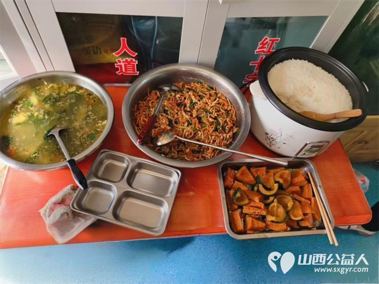 山西省红十字会志愿者协会幸福食堂为孤寡老人免费提供午餐,志愿者根据老人饮食习惯定制餐食。