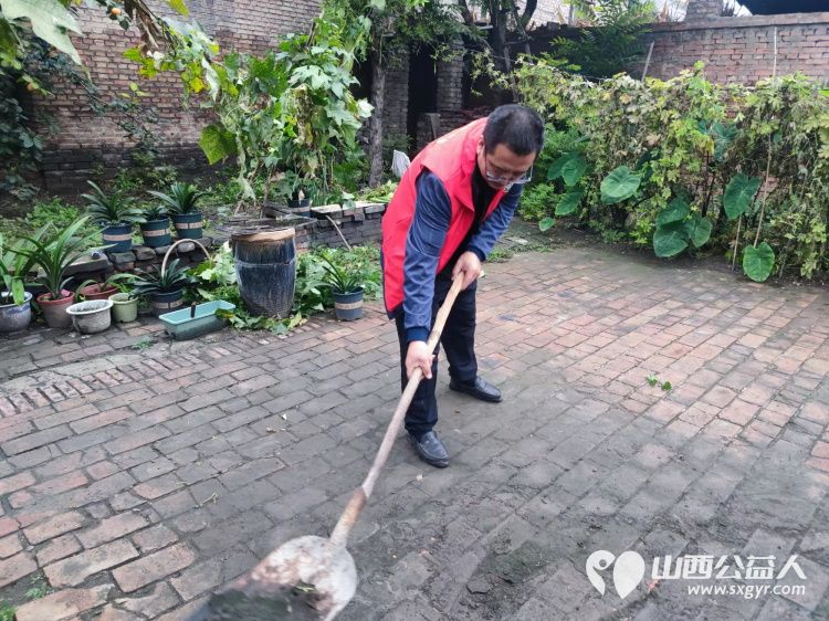 介休市敬老协会志愿者走进连福镇南王里村入户83岁特困老人田兆武老人家中为老人打扫室内外卫生做饭包饺子