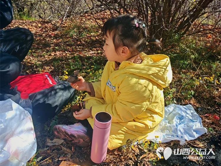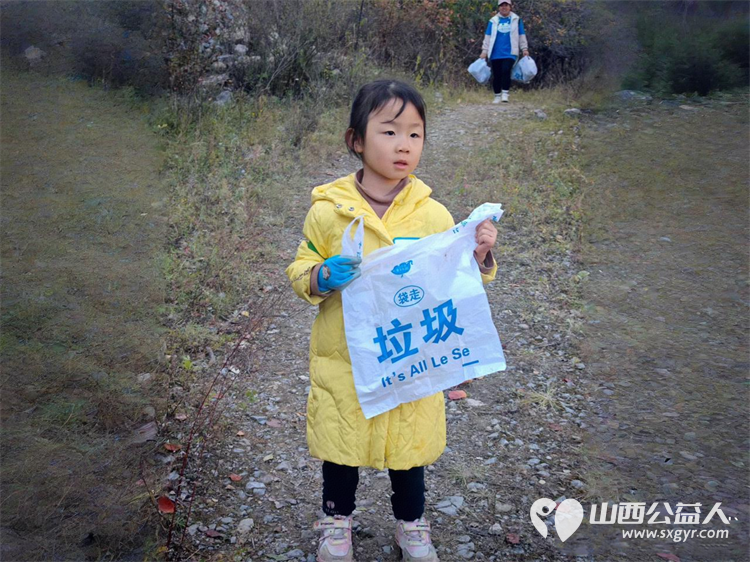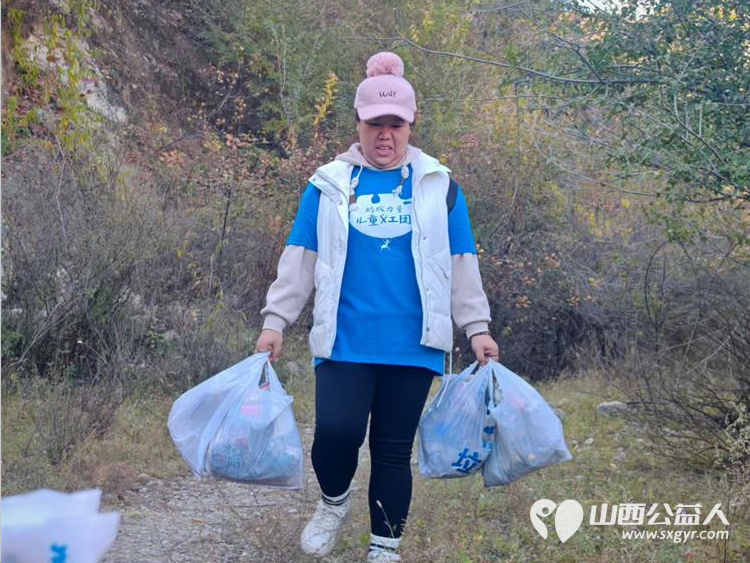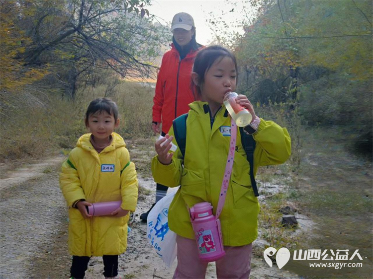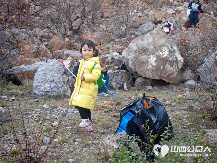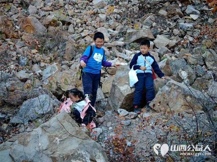 太原市儿童友好促进会儿童义工团的第一次的龙山净山记徒步净山带走垃圾为我们十五个孩子点赞