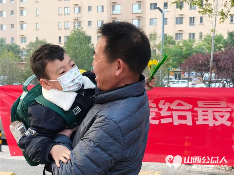 秋冬之交的清晨,天气明显冷了。当平日风里雨里、晨起暮后、酷暑严寒中一次次任劳任怨带着孙子孙女到校的爷爷奶奶们在校门口停留,突然看到那一双双小手从书包里变出的礼物,无论是一张小小的卡片,还是一朵手作的小花,伴随着一句祝福安康的话语,一个大大的拥抱,一个小小的比心……他们的脸上漾起了很深的笑意,有好几位爷爷奶奶满眼是泪……老人们面对孩子们的稚嫩谢意,甚而会很害羞。他们一次次地重复这是我们应该做的,但又那样真诚的一次次感谢学校安排这样的活动。