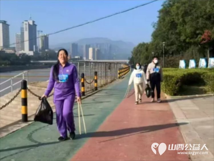他们弯腰捡拾的身影成为桃河边一道靓丽的风景线,吸引众多市民驻足观看并纷纷点赞
