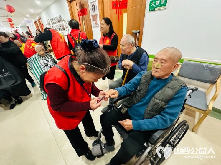 为老人理发,解决老人们的“头”等大事,让老人们都“焕然一新”,精神百倍