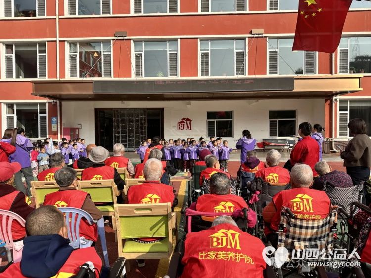重阳情暖童声雅韵满院香 志愿者们走进太原市比家美养老连锁机构的三家分部为老人们送上了重阳节的祝福