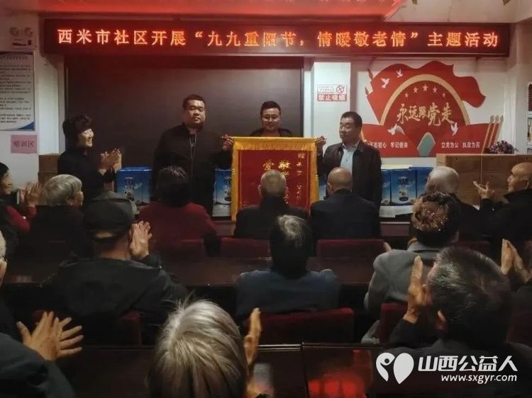 活动尾声, 西米社区志愿服务队为本次慰问活动的赞助方郑重颁发了锦旗。鲜红的锦旗上印着“敬老爱老传美德,爱心企业暖人心”的致谢语, 既是对其助力社区养老服务、 传递社会温暖的肯定, 也让这份双向奔赴的善意成为活动中又一暖心瞬间, 为此次敬老关怀行动画上圆满句号。