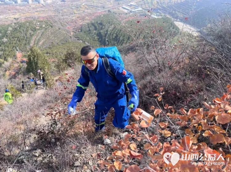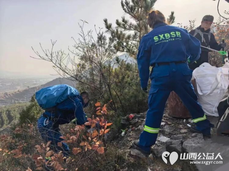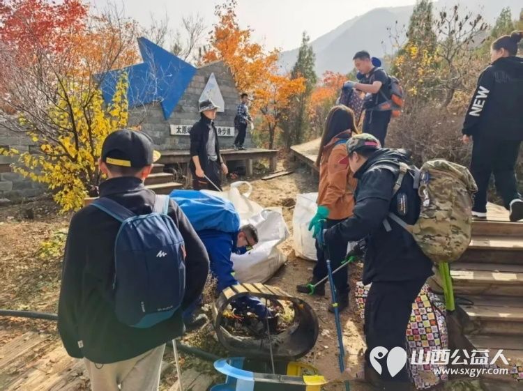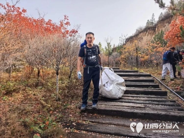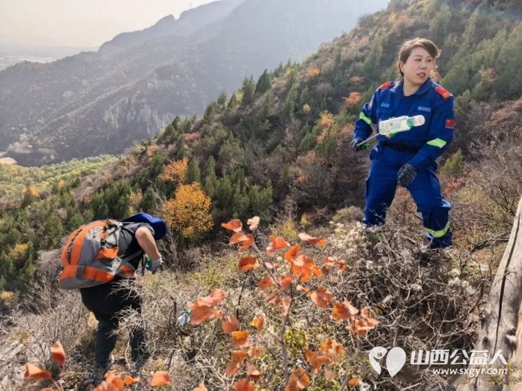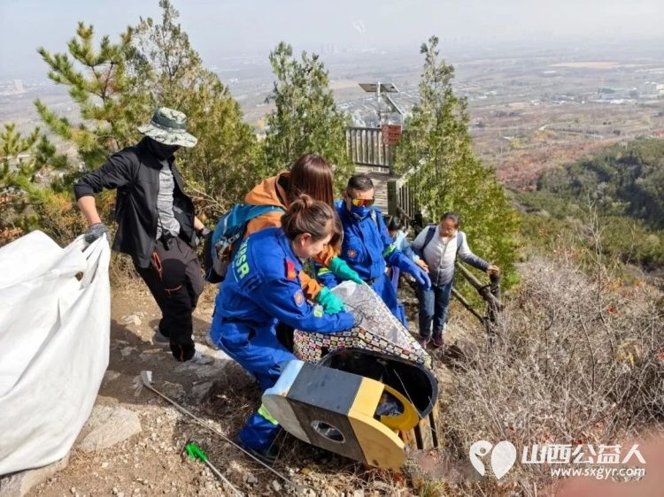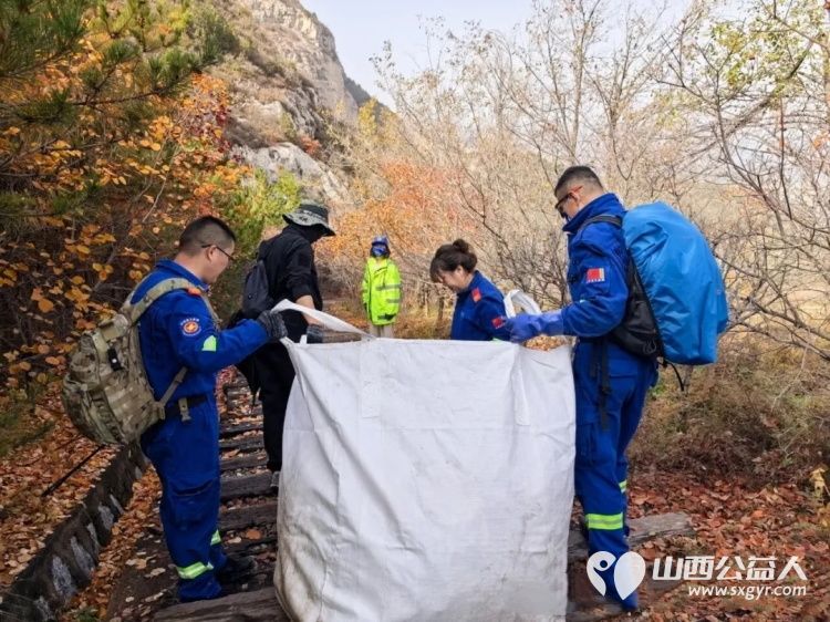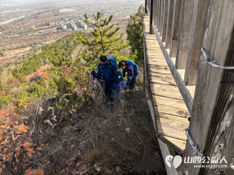 崛围拾光·为山净颜 山西蓝天救援队组织队员在太原市崛围山步道捡拾垃圾就为了让这条步道能干干净净地躺在这山里