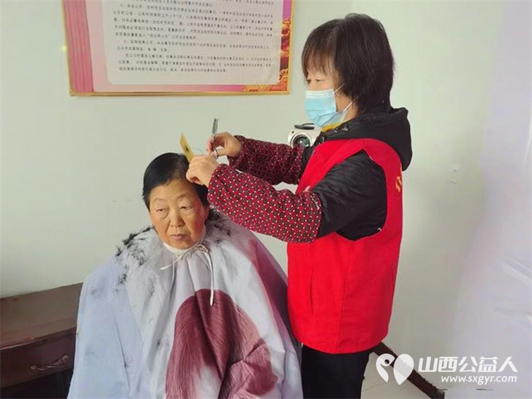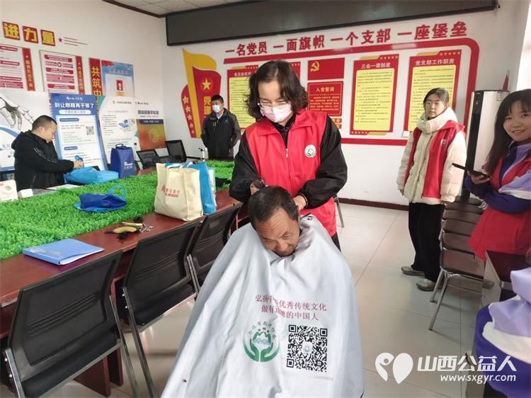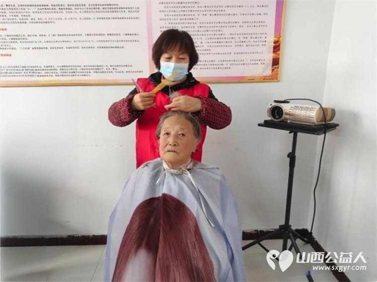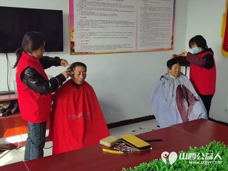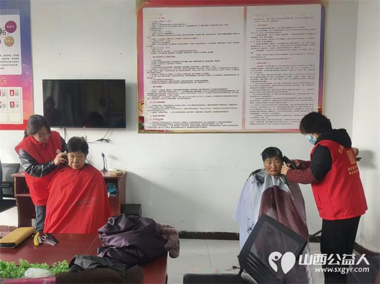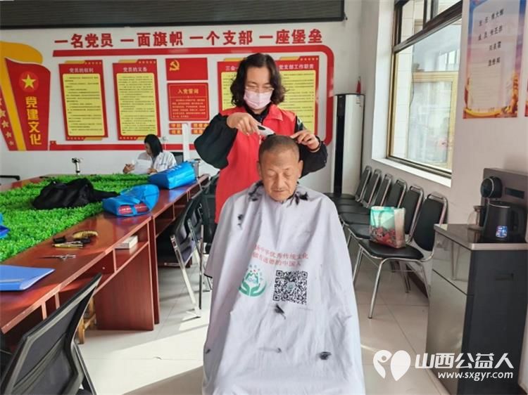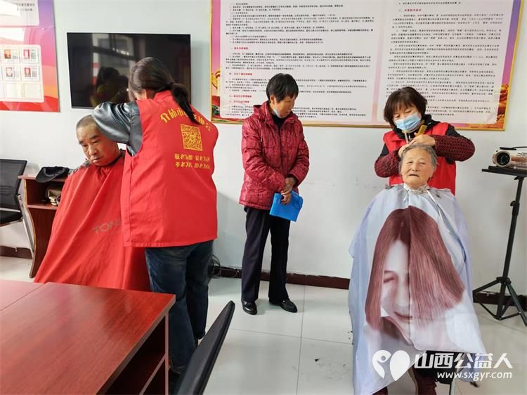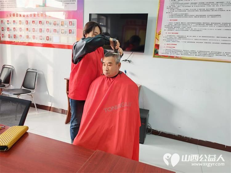义安镇白家堡党群服务中心,在村委为老人爱心理发