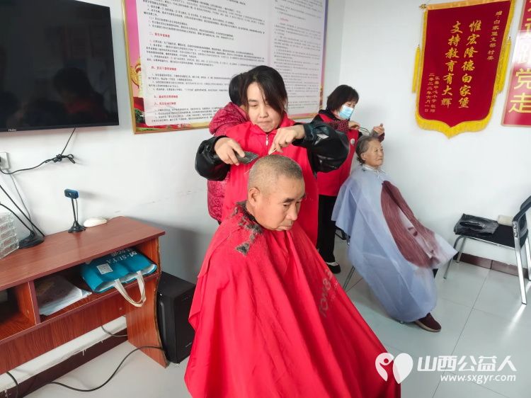 介休市敬老协会2025年11月8日孝善行之敬老爱老助老活动走进义安镇白家堡村为60岁以上所有老人理发体检