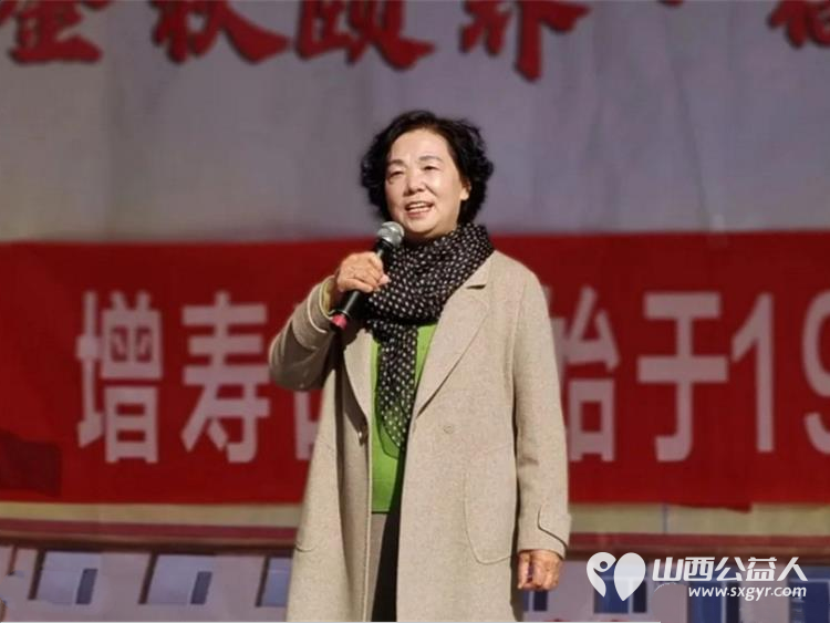 马艳平校长带来的歌曲《阳光路上》,它甜美磁性的嗓音使演出掀起高潮,赢得老人们阵阵掌声。
