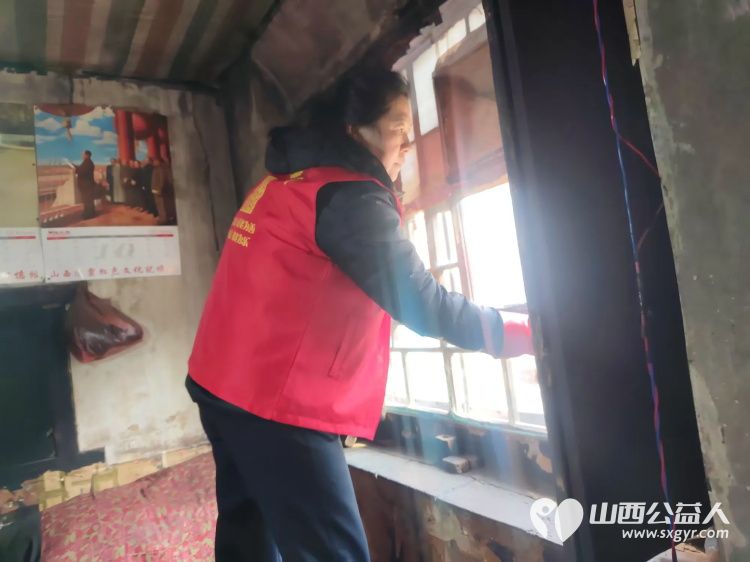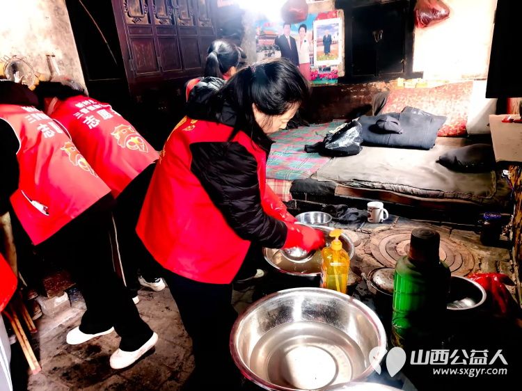 介休市敬老协会在张兰镇田堡村入户85岁特困王友庆老人家中为老人擦玻璃打扫室内外卫生理发洗漱剪指甲做饭包饺子