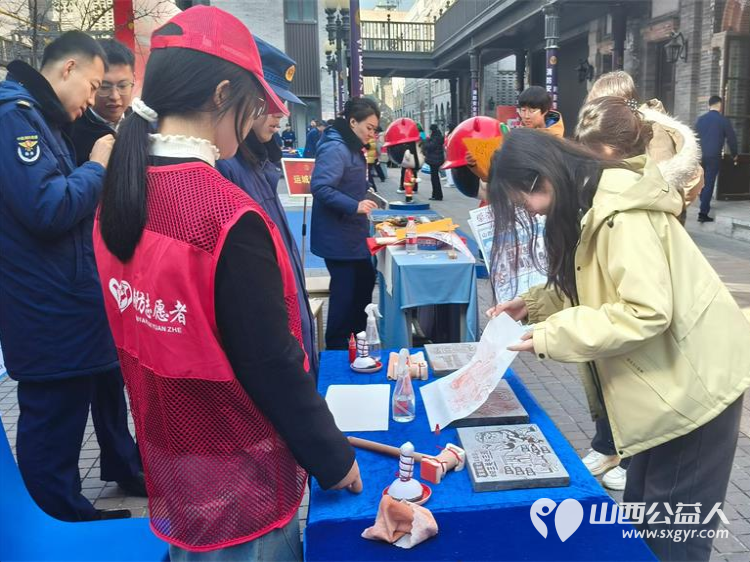 11月13日至16日,晋中新青年高校志愿者联合服务中心组织消防志愿者,配合晋中市消防救援支队的工作人员,在山西省太原市钟楼街的“消防科普小镇”,通过趣味游戏、互动答题、非遗制作、实操演练等形式多样的宣传与实践,有效普及消防安全知识,营造了“人人关注消防、人人参与消防”的良好氛围。
