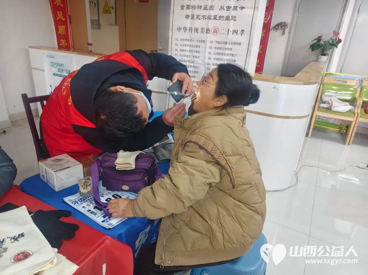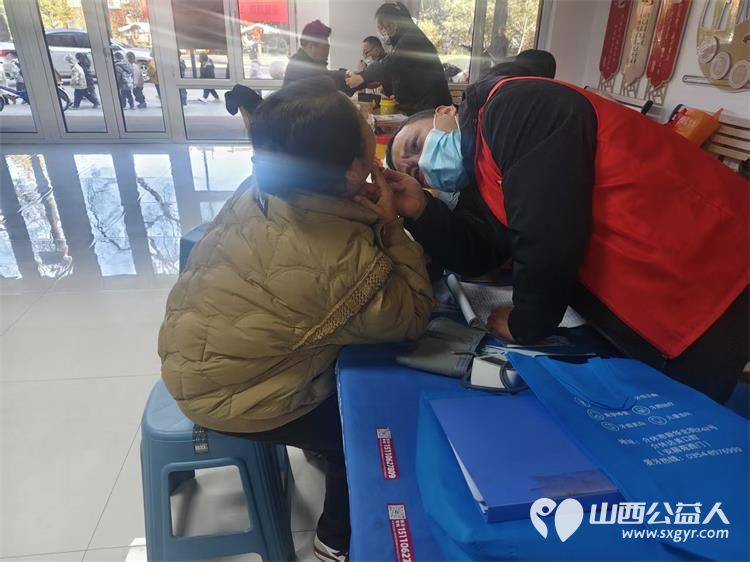介休市敬老协会组织志愿者2025年11月19日在介休市西关街道金融路社区为社区所有老人爱心理发义诊