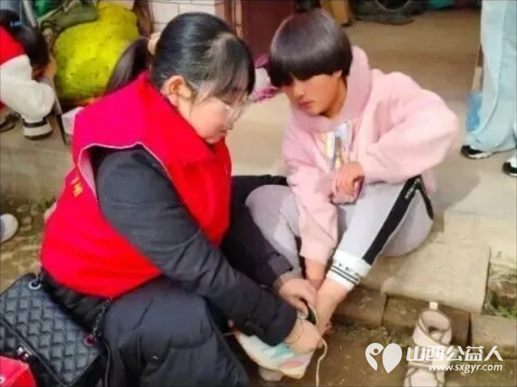 东方红学校的马艳老师捐助了300余元的文具和食品,在为妹妹换棉鞋时发现孩子竟没穿袜子,心疼不已:“没有父母照料的孩子太让人心疼了。”