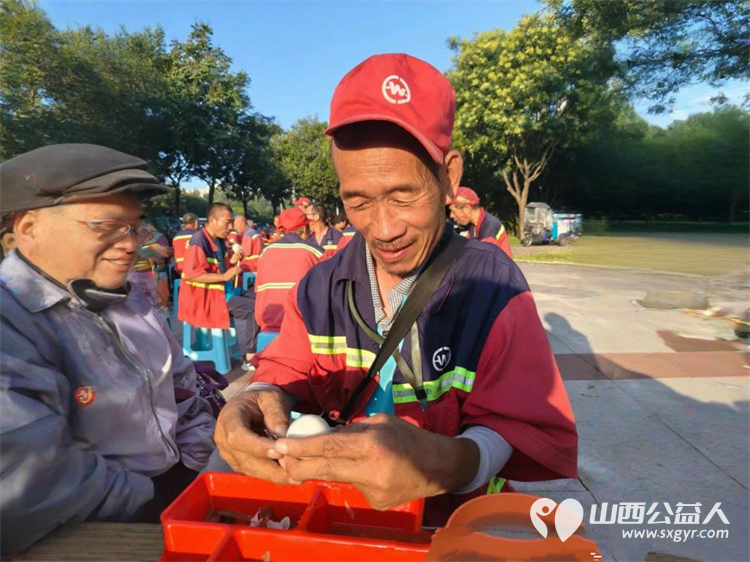 情系“城市美容师”,早餐暖胃更暖心。 在运城,盐湖区志愿者协会关爱环卫工人已成为一道动人的风景线。而广胜堂,是这道风景线最坚定的守护者之一。公司自2018年起每月固定捐赠2400元,专项支持爱心早餐的运营。 更为难得的是,这份关爱还有着细腻的“加餐”——每周一,当环卫工人们结束清晨的劳作,都能在爱心早餐点领到一份由广胜堂提供的养生鸡蛋。 这枚小小的鸡蛋,饱含的是对劳动者最直接的敬意与关怀。