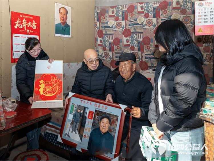此次活动不仅为老人们送去了精心拍摄制作的装裱版“合家欢”照片、寓意吉祥的特制长寿新年挂历,还有太谷区心连心志愿者协会倾情捐赠的爱心物资和慰问品。