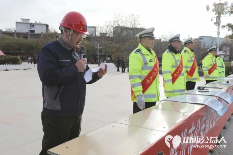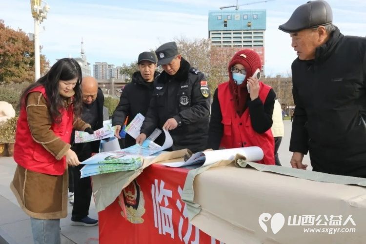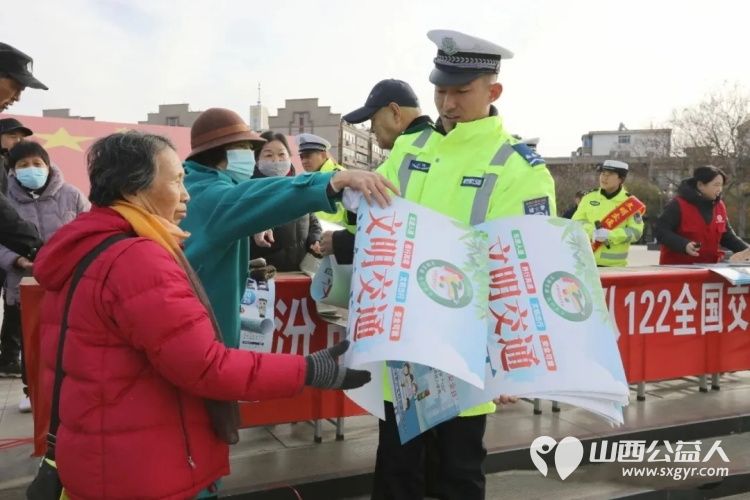 临汾市公安局交通警察支队直属一大队协同临汾市文明交通志愿者协会,以“文明交通、礼行天下”为主题开展交通安全宣传活动,用“荧光绿”牵手志愿红,将交通安全知识送到群众身边,为古城冬日增添了一抹平安底色 。
