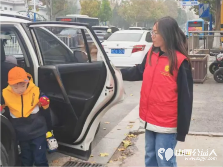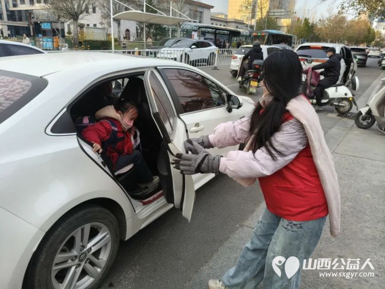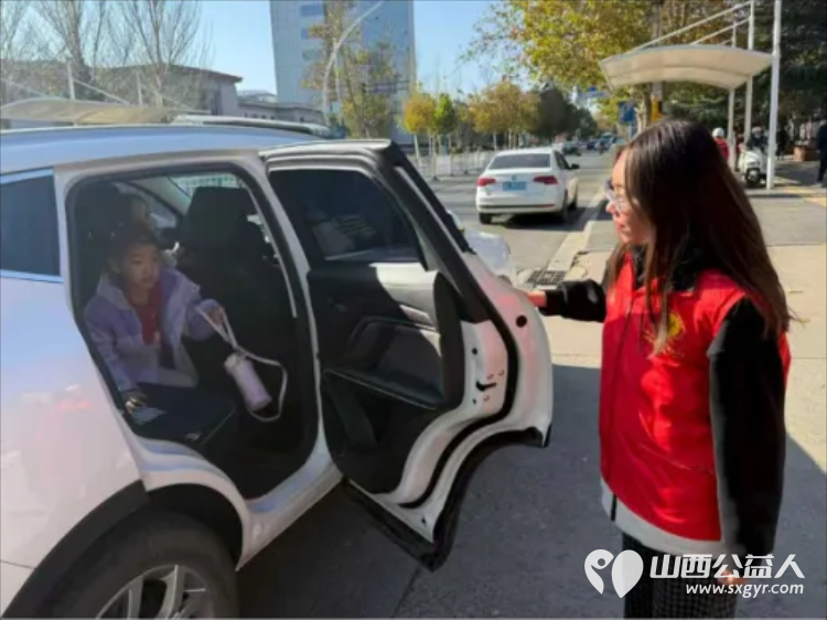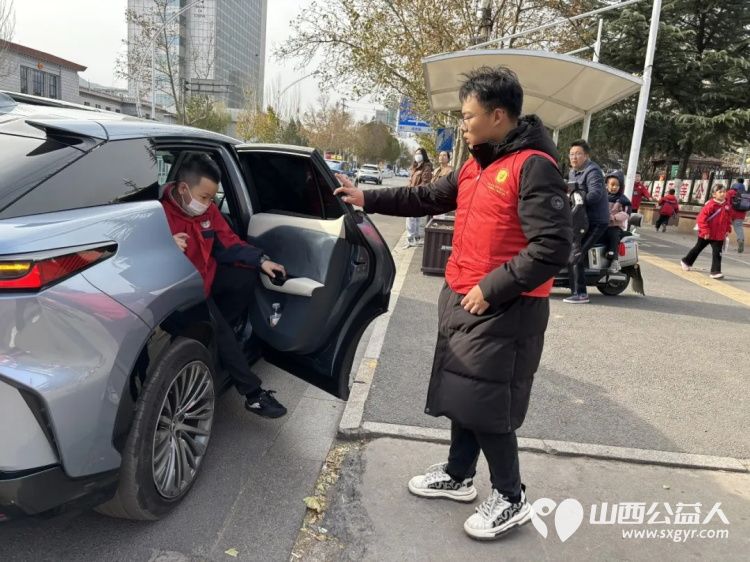 每到上学时间,义工们就准时出现在北大街小学的校门外,协助交警护送学生快速下车,安全进入学校,共同维护校园周边交通秩序,守护着小学生的上学平安路。