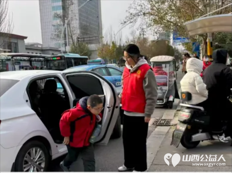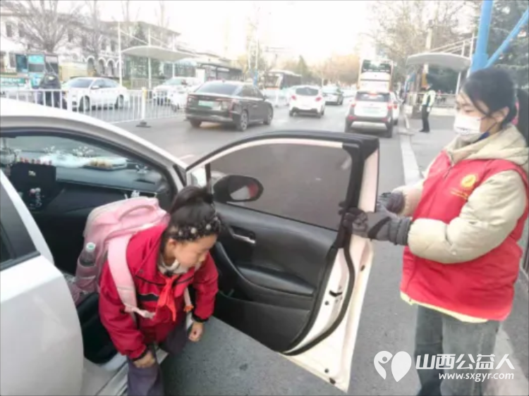 人来车往的校门口,多了义工的守护,给学生一份关心,给家长一份放心图片