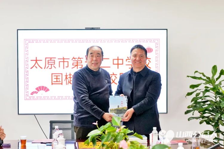 山西北京大学校友会向太原市十二中学校授予“山西校友之家”牌匾,并捐赠山西北京大学校友会二十年《大事记》。
