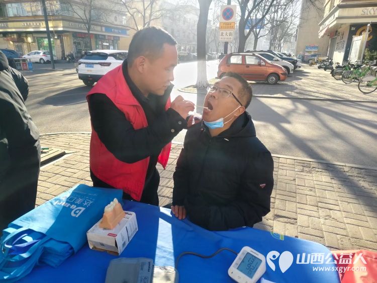 达美口腔、绵山眼科和晋中三院的医护人员为老人量血压、口腔检查、测试力、白内障检查、癌症筛查……他们以医者仁心赴公益之约,为老人们晚年生活送去一份温暖。