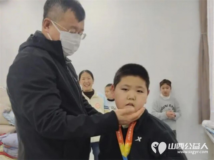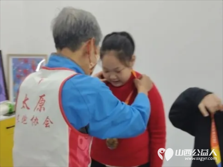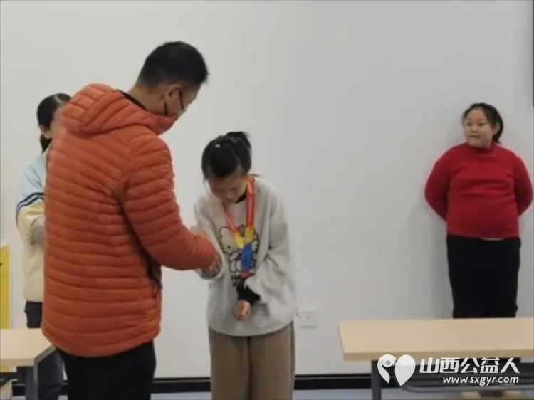 活动中,志愿者们不仅为孩子们带去了精心准备的慰问物资,还特别为孩子们准备了一份意义非凡的礼物——20枚“金地杯晋阳湖环湖健康行”活动的奖牌。这些象征着坚持和勇气的奖牌,瞬间吸引了孩子们好奇而欣喜的目光。