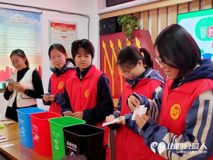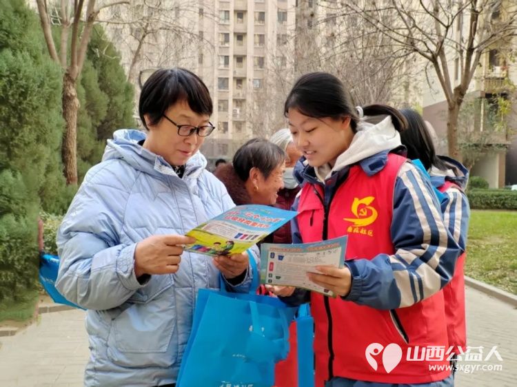 临汾志愿者集结为文明城市助力 临汾市志愿服务联合会、临汾市护苗爱心志愿服务队在尧都区康庄社区组织学生志愿者开展垃圾分类宣传活动