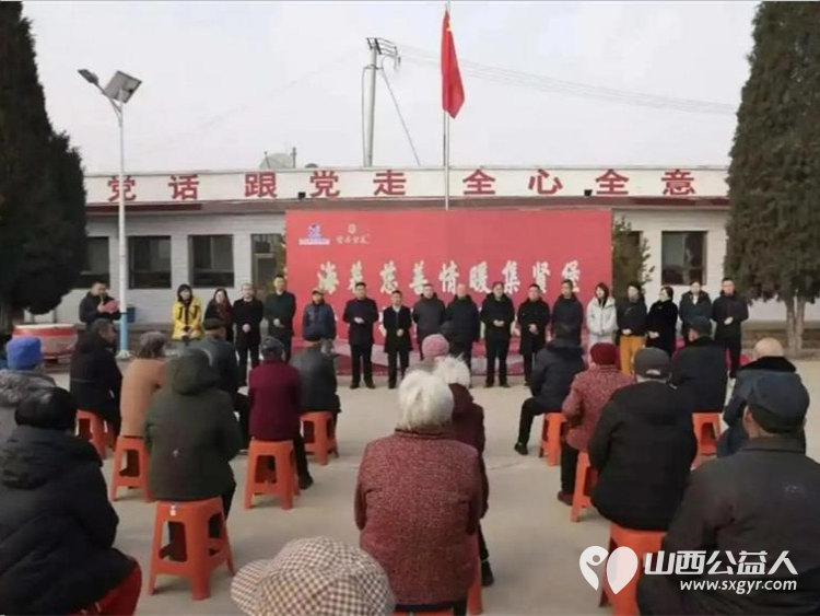 山西省海养慈善基金会联合山西晋善晋美控股集团开展乡村敬老捐赠公益活动为汾阳市栗家庄镇集贤堡村老人送上180余件羊毛衫捐赠20台电子设备