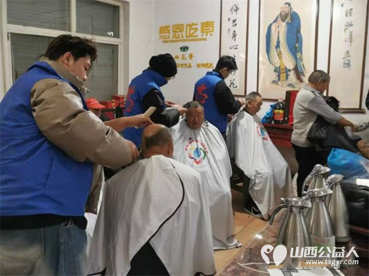 长治市小雨点公益志愿者协会志愿者如约而至来到雨花斋二部十年如一日坚持为老人义务理发义务帮厨