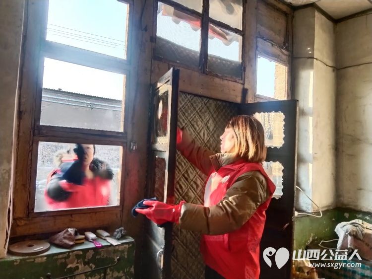 按照介休市敬老协会理事会的决议,协会志愿者于2025年12月27日上午8:30来到了介休市义安镇孟村湾村,入户83岁特困老人姚安元家中,为老人擦玻璃、打扫室内外卫生、刷洗锅碗瓢盆、洗衣服。