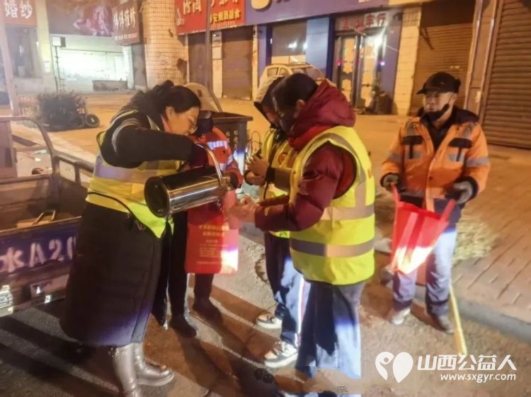 九年温情暖文水一杯姜茶敬晨光----文水县爱心帮扶志愿者协会元旦开展慰问环卫工人志愿活动