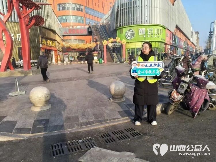 青春护行暖迎元旦----文水县爱心帮扶志愿者协会返乡大学生志愿者在文水县东门红绿灯路口撑起文明平安伞为市民假期出行筑牢安全防线
