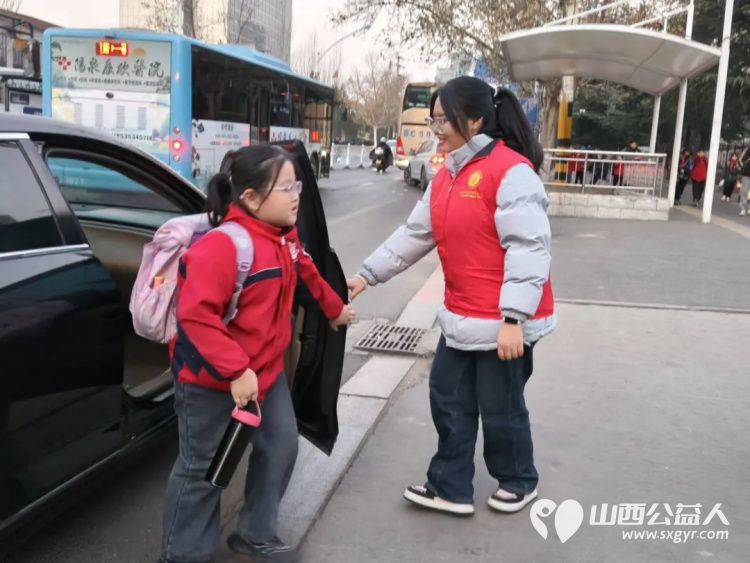 人来车往的校门口,多了义工的守护,给学生一份关心,给家长一份放心