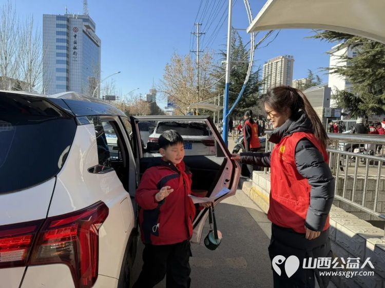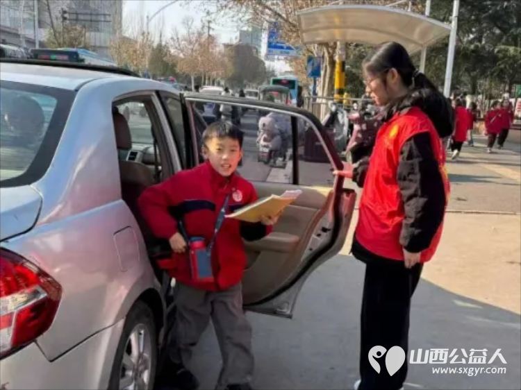 2025年12月阳泉义工联合会组织义工在北大街小学护学岗服务共同维护校园周边交通秩序守护着小学生的上学平安路