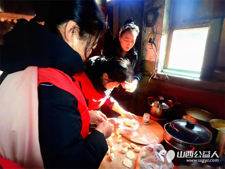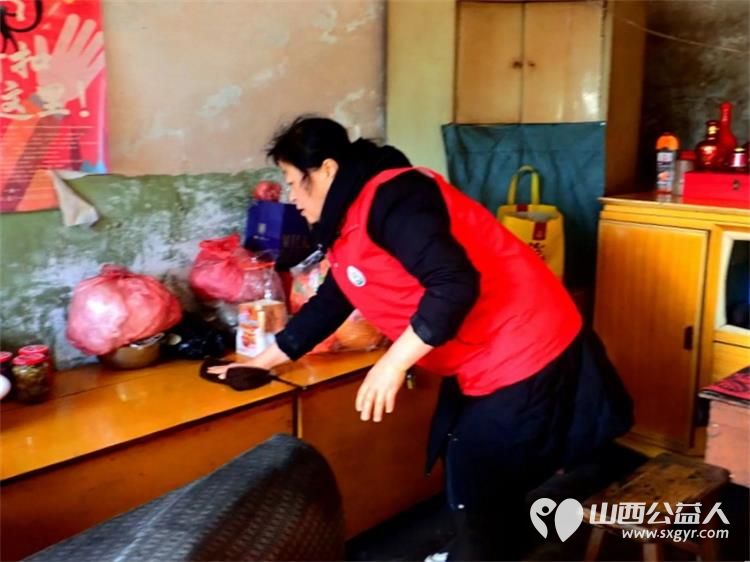 介休市敬老协会组织志愿者走进绵山镇马堡村入户84岁任三女老人家为老人打扫室内外卫生做饭包饺子送去爱心人士捐赠的苹果一袋